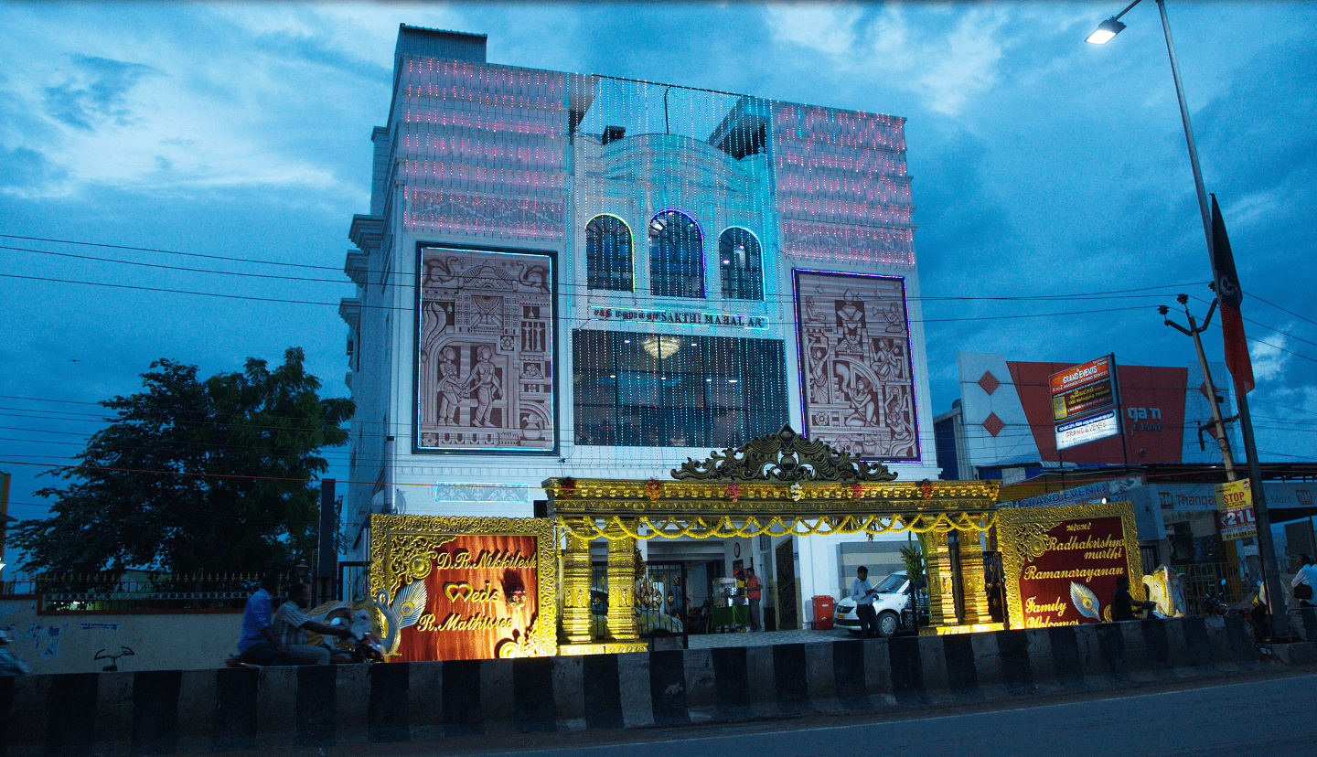 Sree Sakthi Mahal A/C is one among the ideal marriage halls in Chennai. We are the best suitable to host different events like wedding, birthday party, Kalyana mandapam, reception and banquet halls in Chennai.